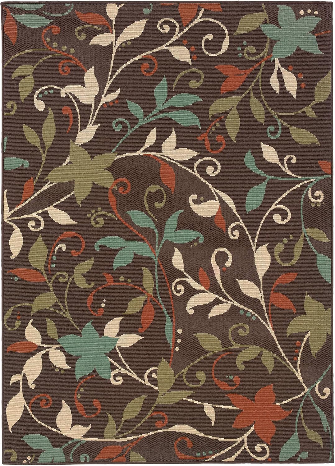 Malibu Indoor And Outdoor Floral Blue And Brown Rug 5 3 X7 6