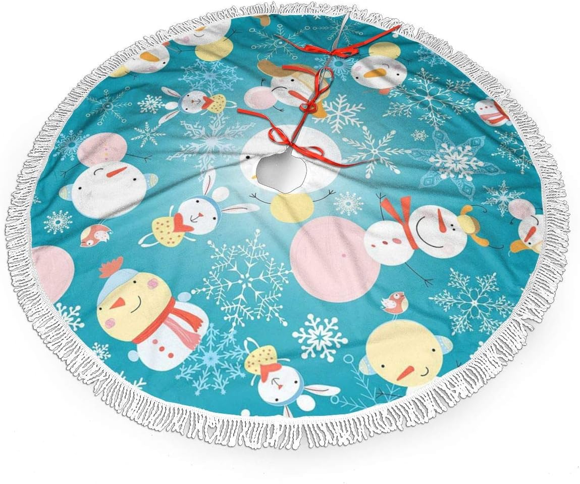 Dyno 48 In Blue Felt Christmas Snowman Winter Tree Skirt With