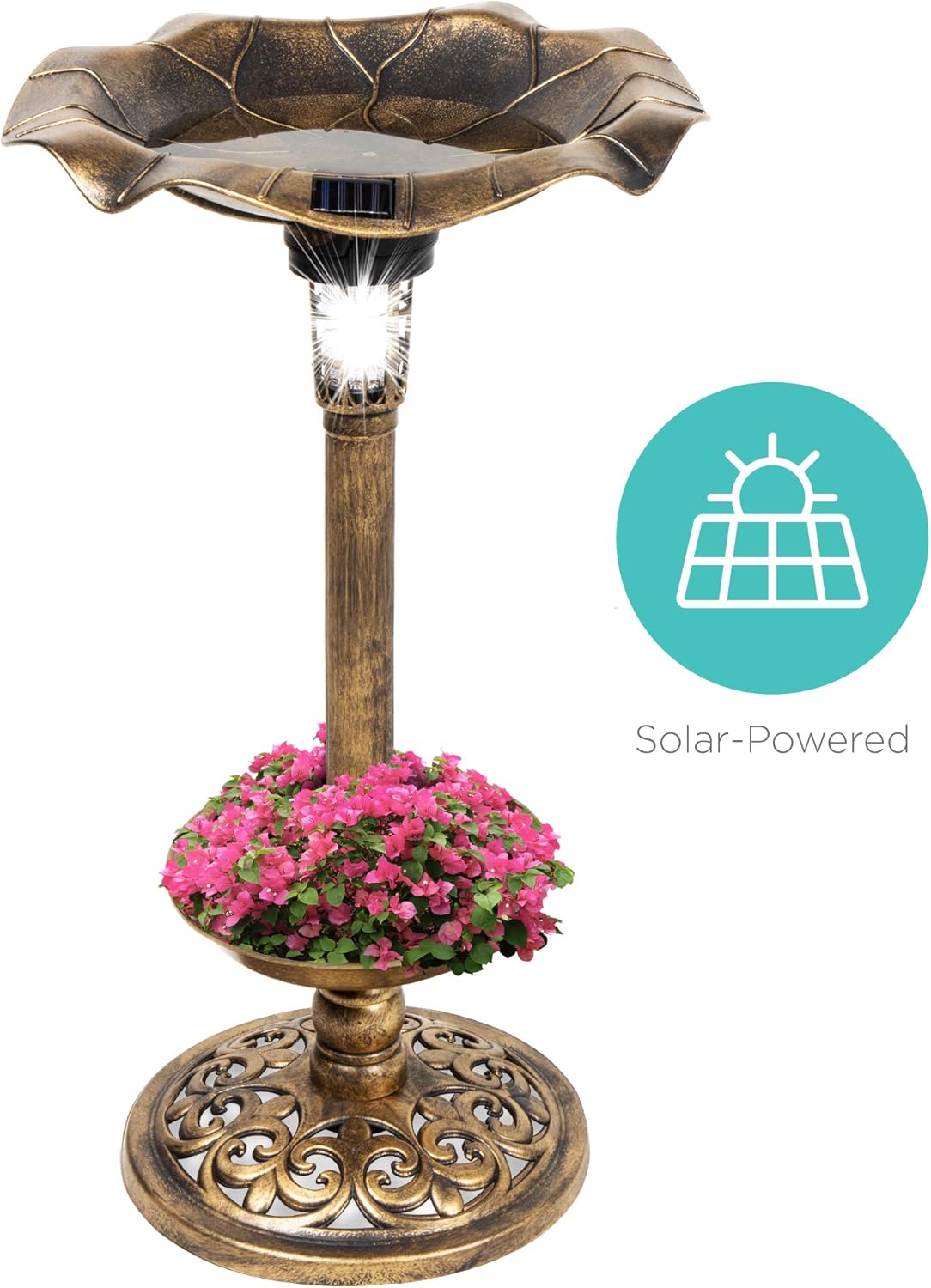 Best Choice Products Solar Lighted Pedestal Bird Bath Fountain W