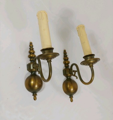 Pair Of Vintage Gilded Bronze Candle Holder Wall Sconces W
