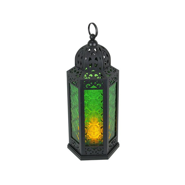 Buy Hexagonal Candel Lantern Of Colored Glass And Pierced Iron