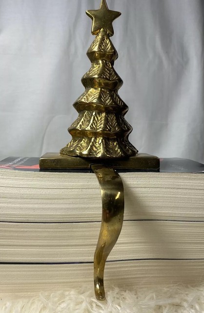 Brass Christmas Tree Stocking Holder Hanger Fireplace Mantle Hook