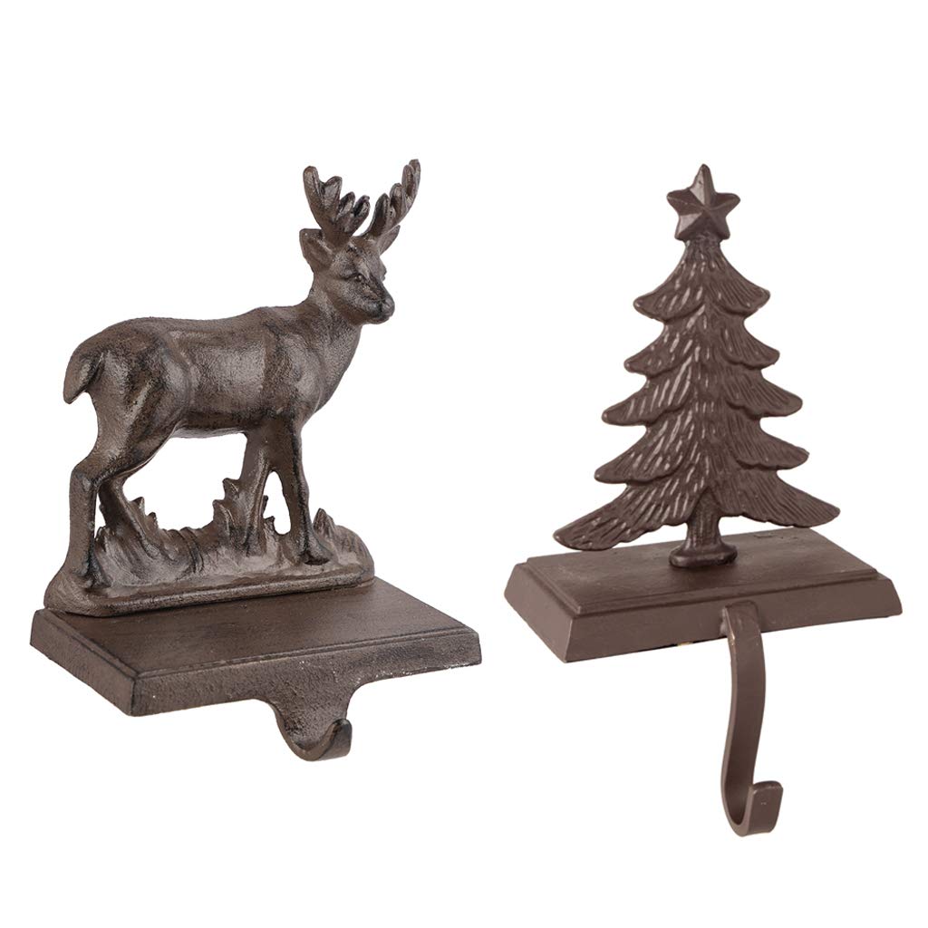 Dibor Cast Iron Deer And Tree Brown Christmas Stocking Holder