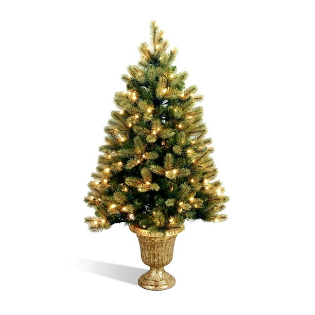National Tree Pre Lit 4 Feel Real Downswept Douglas Fir Entrance Artificial Christmas Tree With 100 Clear Lights And Dark Bronze Plastic Pot Walmart Com Walmart Com