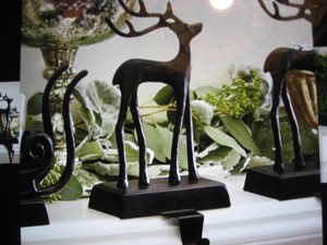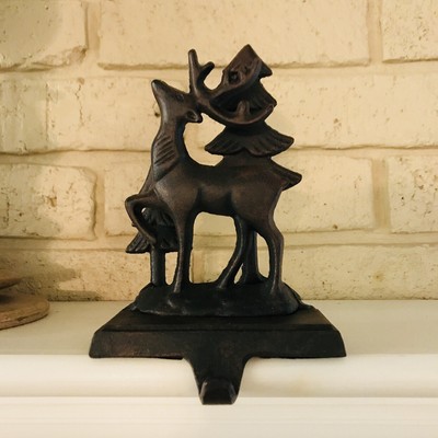 Metal reindeer stocking holders christmas mantel decor deer hangers heavy black. Christmas stocking holder deer snowman xmas tree snowflake hangers for mantle fireplace free standing indoor christmas decorations elk 1399 13. 129 results for deer stocking holder save deer stocking holder to get e mail alerts and updates on your ebay feed.
