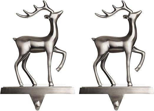 Stocking holder solid brass long arm santa in sleigh christmas 112 pound. Klikel christmas reindeer stocking hanger for mantel set of 2 silver metal deer stocking holder with hook deer facing right 40 out of 5 stars 28 3399 33. Free shipping on many items. Premium quality classic stocking holder holiday season decor christmas hanger metal in bronze finish set of 4 6 inch each holds up to 10 pounds 46 out of 5 stars 44 1499 14.