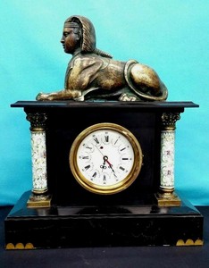 Antique Sphinx Bronze And Blackstone Desk Clock Mechanical Working