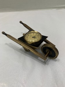 Antique Solid Bronze Whimsical Wheelbarrow Desk Clock 4 Swiss