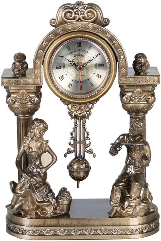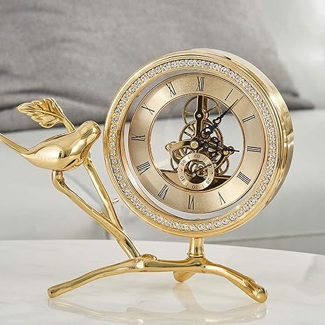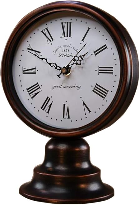 Haofay Desktop Clock Bronze Retro Desk Clock Non Ticking Table