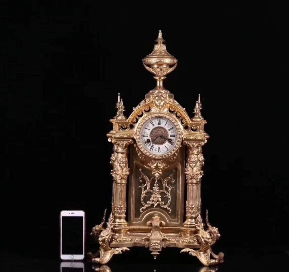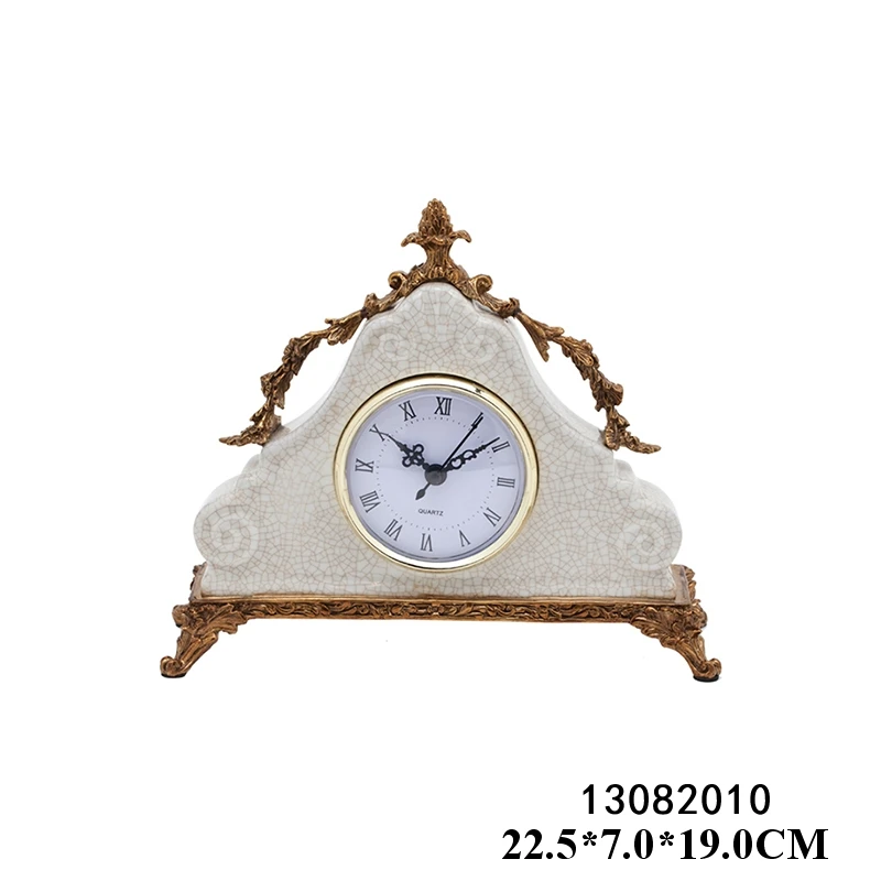 European Antique Crafts Table Bronze Ceramic Clock Luxury Brass