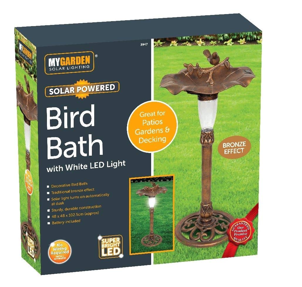 New Copper Bronze Effect Solar Led Light Garden Bird Bath