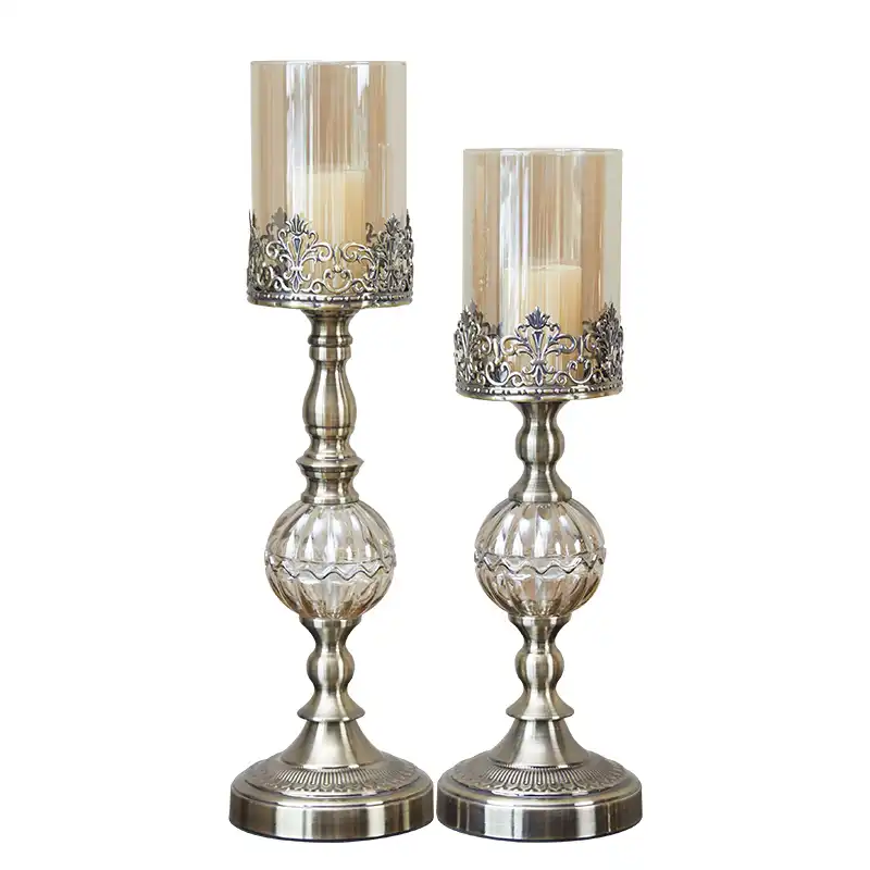 Buy Bronze Iron Glass Decorative Etched Hurricane Pillar Candle