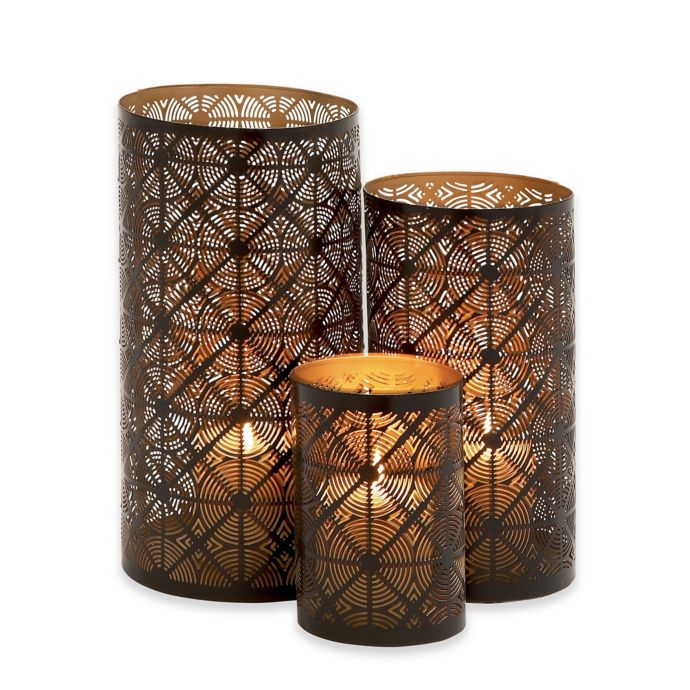 Ink Ivy Warwick Hurricane Candle Holder In Bronze Bed Bath