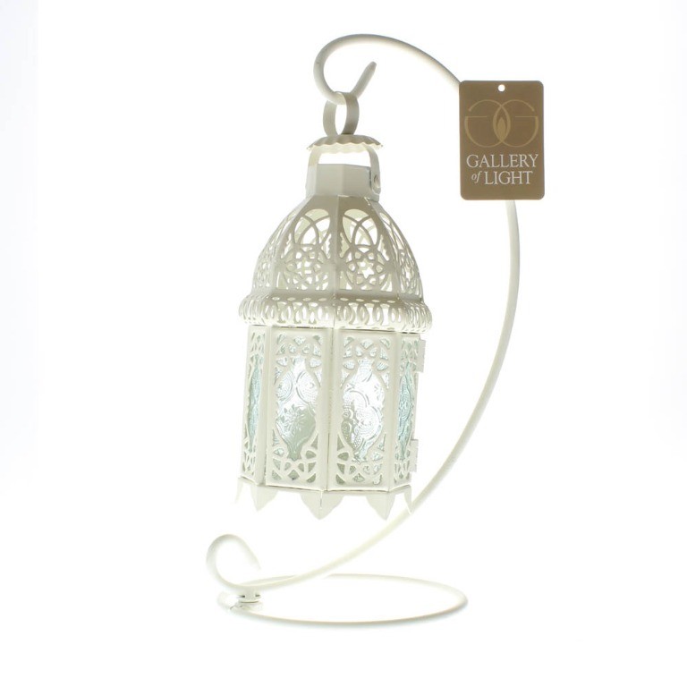Set Of 2 White Fancy Candle Lantern W Stand Tabletop Or Hanging