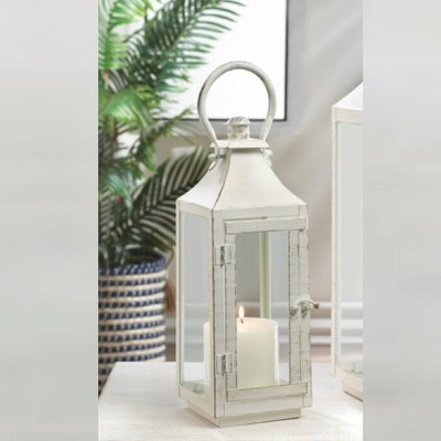 Wedding Lantern Centerpiece Antique White Ivory Finish With Tan