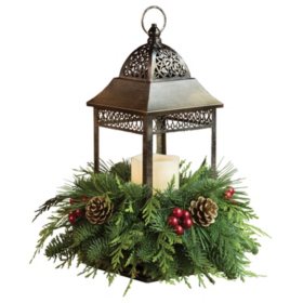 Bronze Led Candle Lantern With Fresh Greens Centerpiece Sam S Club