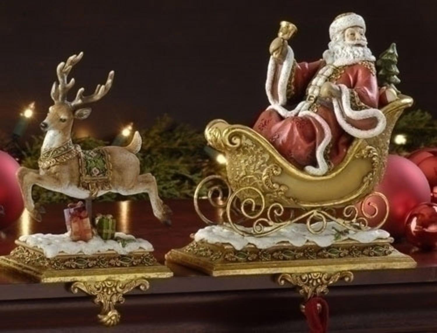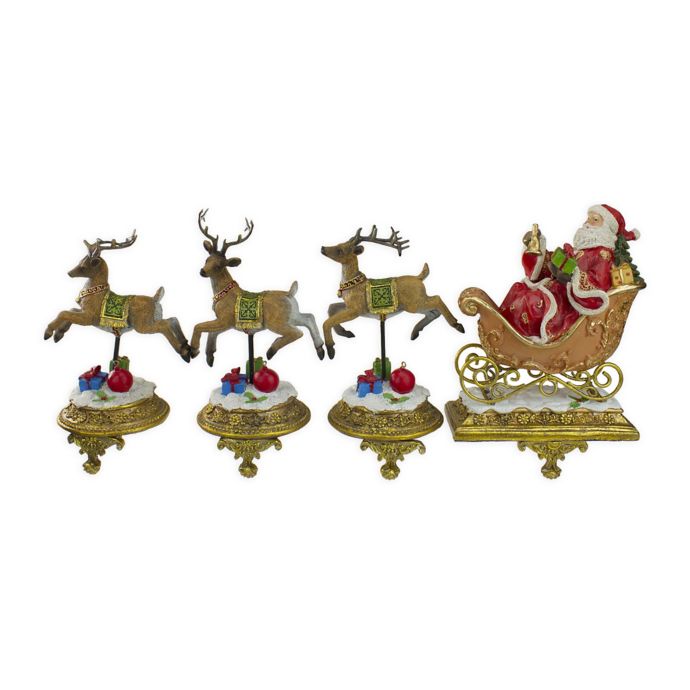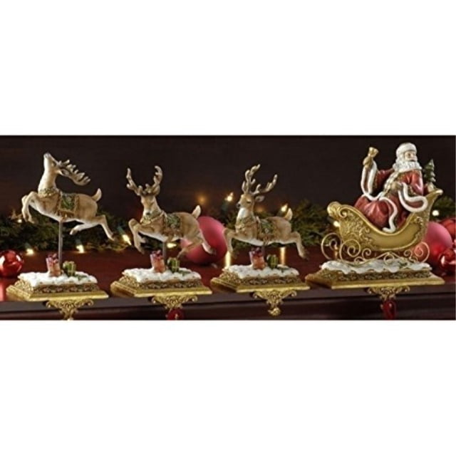 Gold Santa Reindeer Stocking Holders Set 4 Traditions