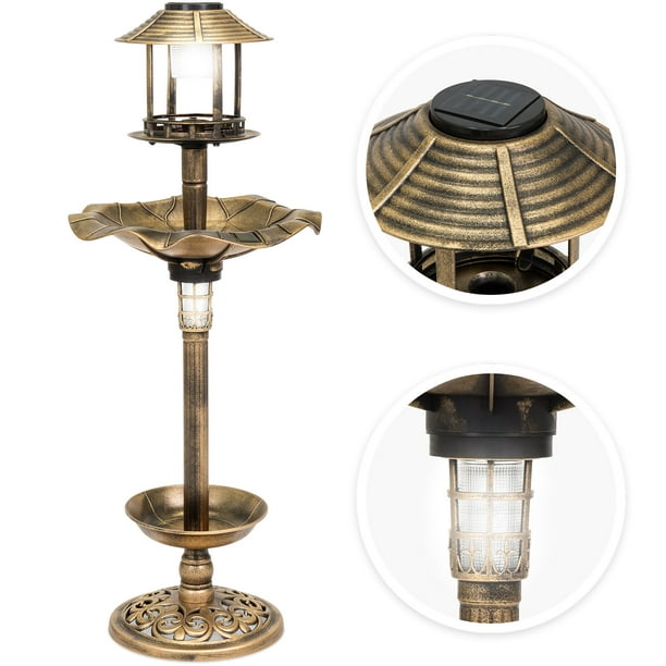 Bcp Sky4677 Solar Led Light Bird Bath Antique Feeder Water Outdoor