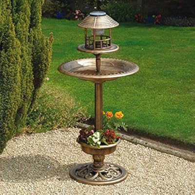 New 3 In 1 Bird Bath With Solar Light Planter Bronze Effect