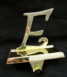 Gold Christmas Stocking Holder Brass Metal Letter E Initial