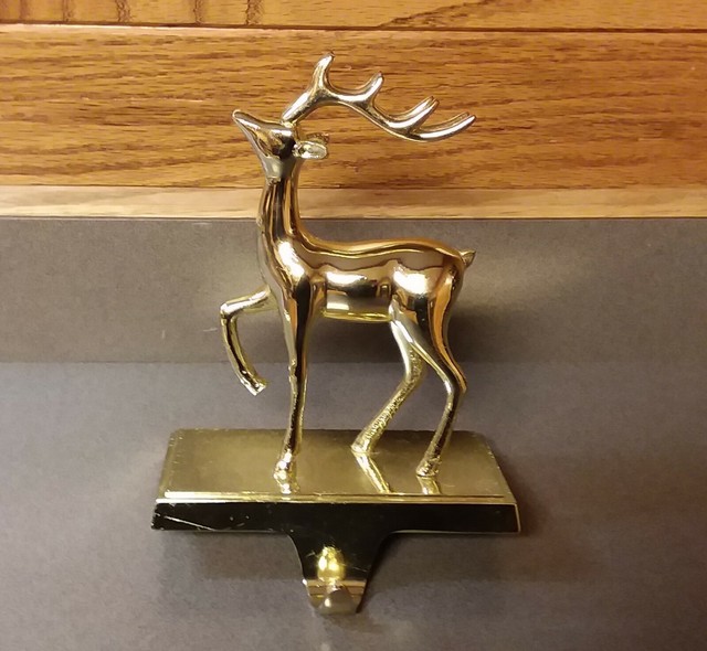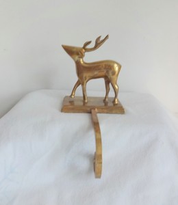Brass Christmas Reindeer Stocking Holder Hanger Fireplace Mantle