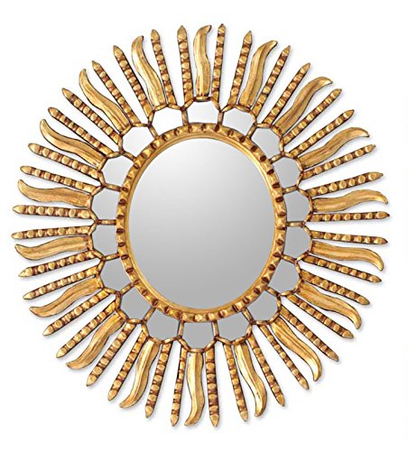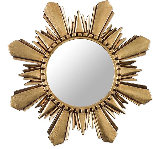 Amazon Com Novica Gold Sunburst Bronze Leaf Wood Framed Decorative Wall Mounted Mirror Metallic Winter Sun Home Kitchen
