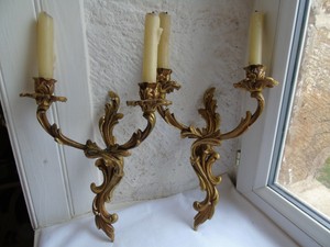Wall Lamp Louis Xv Solid Bronze Old Gold Two Candle Holders