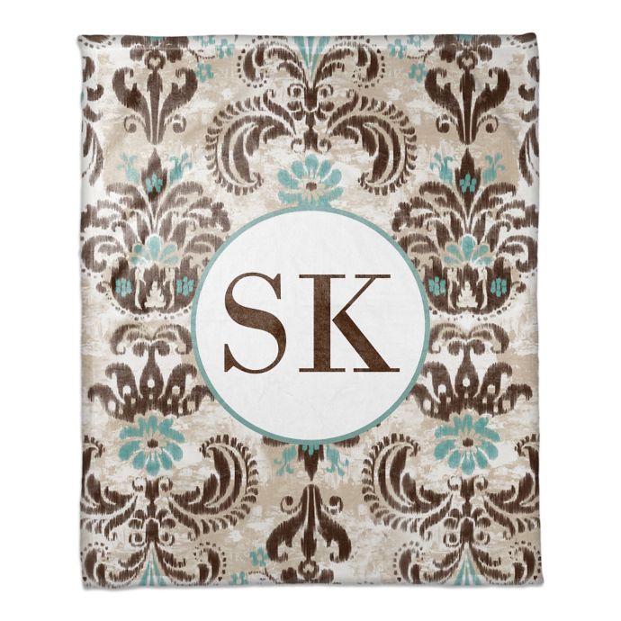 Damask Monogram Throw Blanket In Teal Brown Bed Bath Beyond
