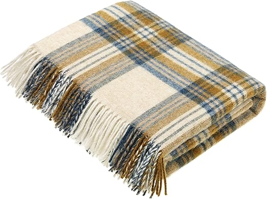 Amazon Com Moon Wool Plaid Throw Blanket Pure New Wool