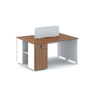 Icreate Hillier Double Desk White Brown Meja Kantor Free Laci