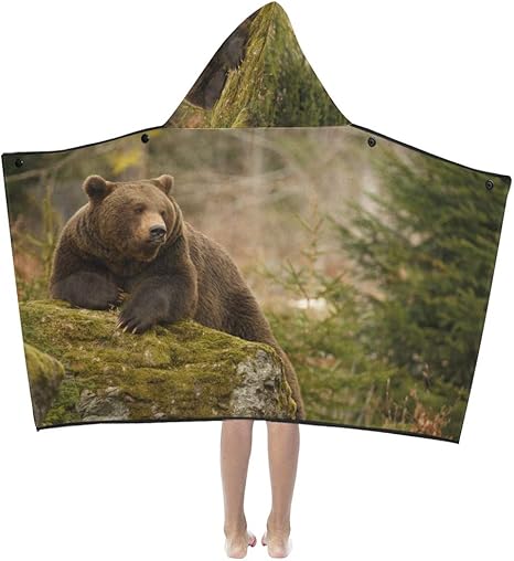 Kids Blankets For Boys Brown Bear Walking In Forest Kids Hooded