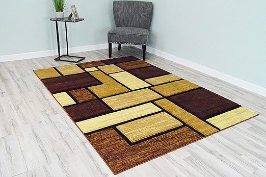 Modern Area Rug 5x8 Color Block Design Brown Beige Tan Taupe Red