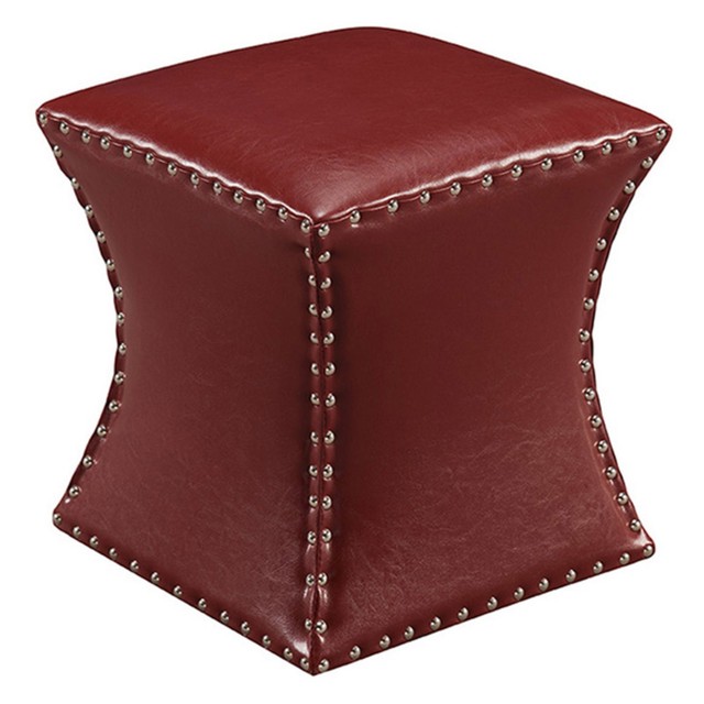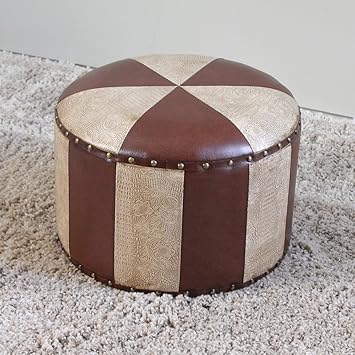 Amazon Com Small Round Ottoman Brown Faux Leather And Nail Head