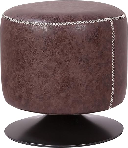 Kings Brand Furniture Brown Nailhead Trim Faux Leather Round