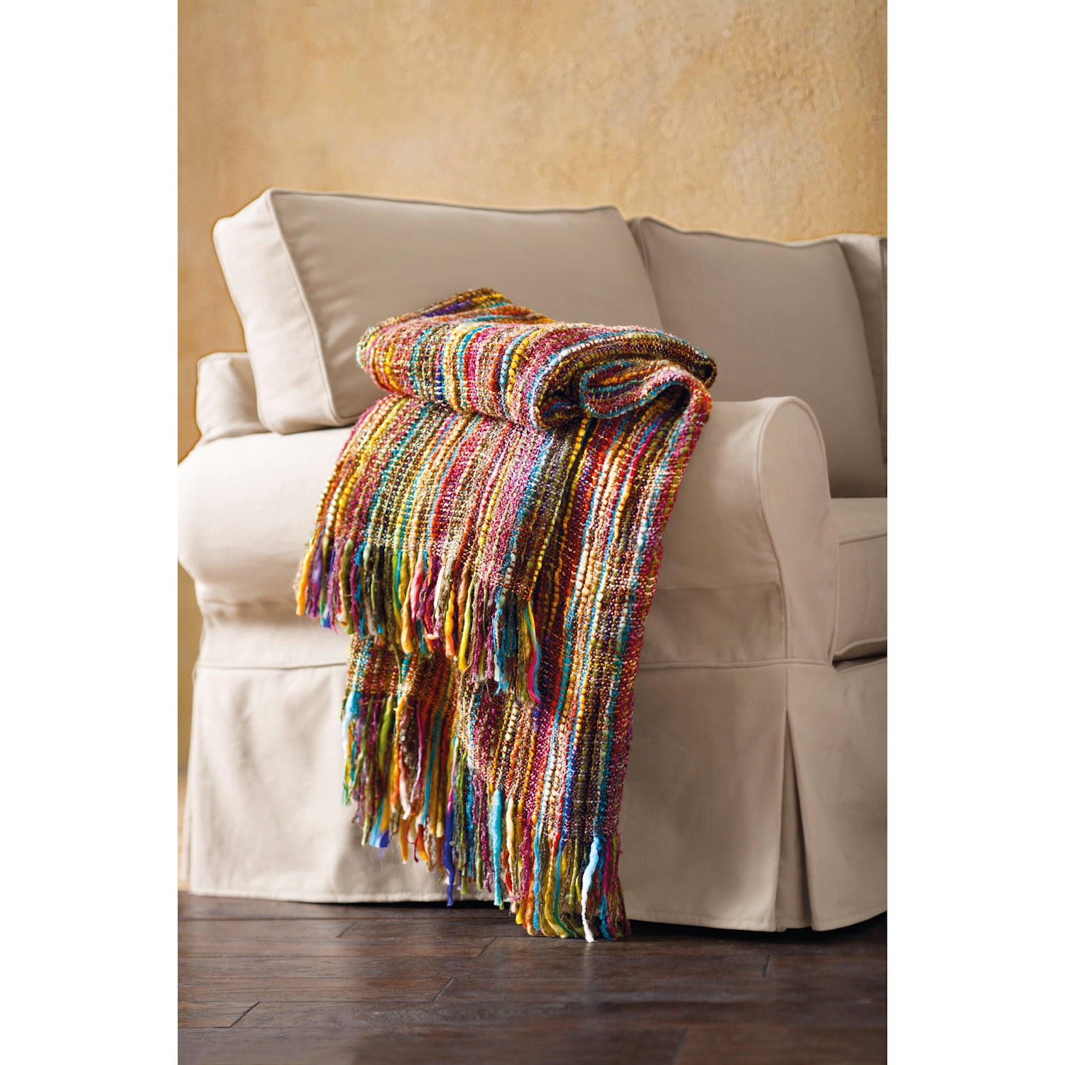 Multi Color Striped Cotton Blend Throw Blanket With Fringe Rc