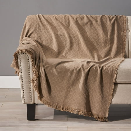 Noble House Cotton Throw Blanket With Fringes 50 X 60 Brown