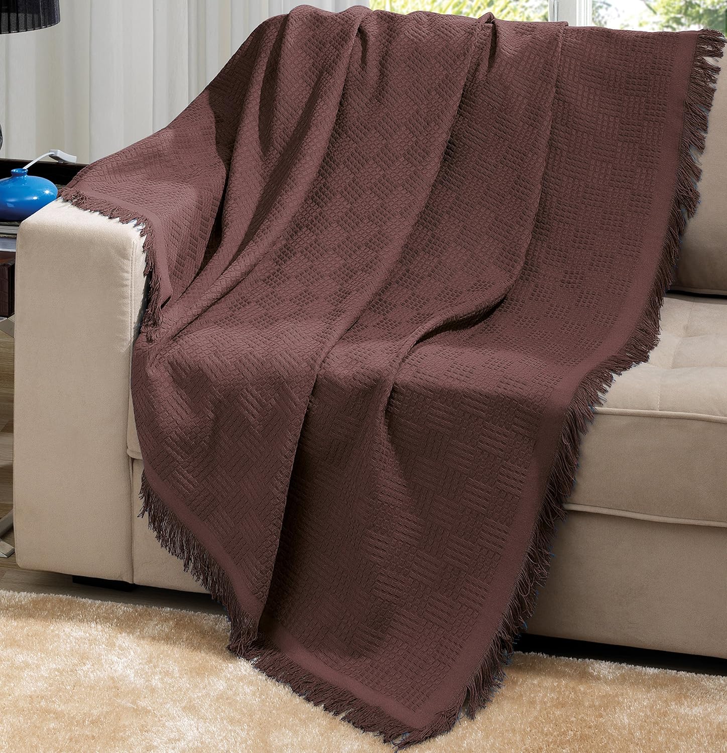 Saddle Brown Throw Blanket W Fringe Woven Art Beyond Llc
