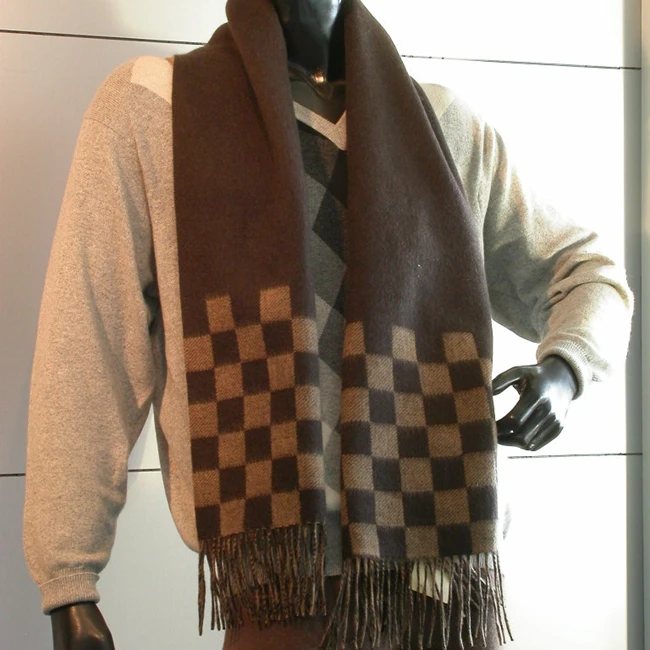 50cc92 100 Wool First Class White Brown Square Fringe Scarf Throw