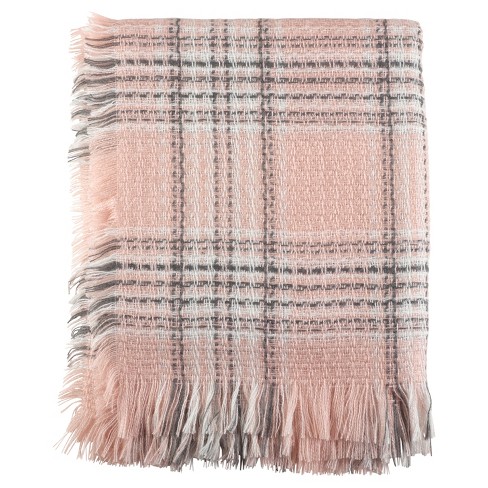 Pink Checkered Plaid Fringe Throw Blankets 50 X60 Saro