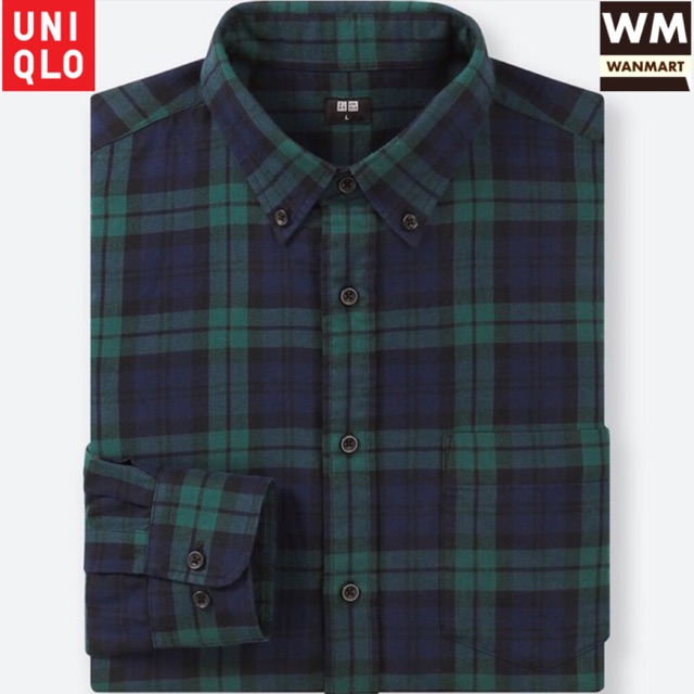 Uniqlo Men Shirt Kemeja Flannel Kotak Pria Lengan Panjang Dark