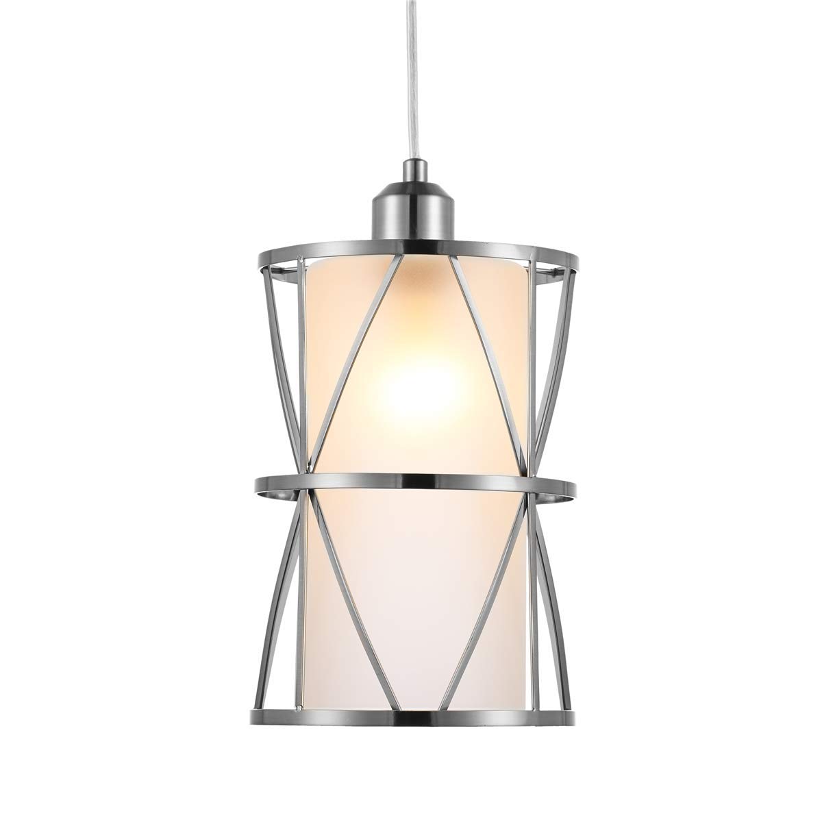 Pendant Light Bulb Glass White Brushed Steel 300mm Diameter 1200mm