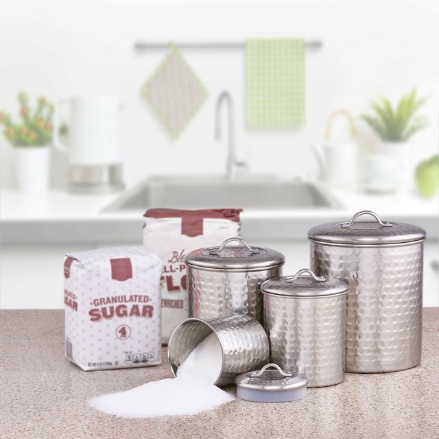 4 Piece Brushed Nickel Hammered Canister 4qt 2qt 1 Qt 1qt Transitional Kitchen Canisters And Jars By Old Dutch