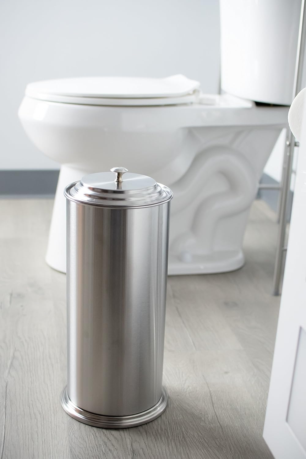 Home Kitchen Bath Freestanding Extra Toilet Paper Holder And Toilet Brush With Canister Complete Set Includes Wastebasket Brushed Nickel Finish Classy Design 3 Piece Bathroom Accessory Set By Ldr Brif Rs