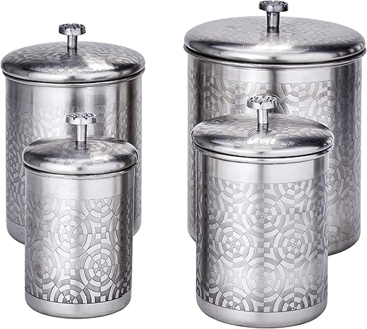 Amazon Com Old Dutch 4 Pc Geometric 4 3 2 Qt Canister Set 11 5qt Stainless Steel Brushed Nickel Kitchen Dining