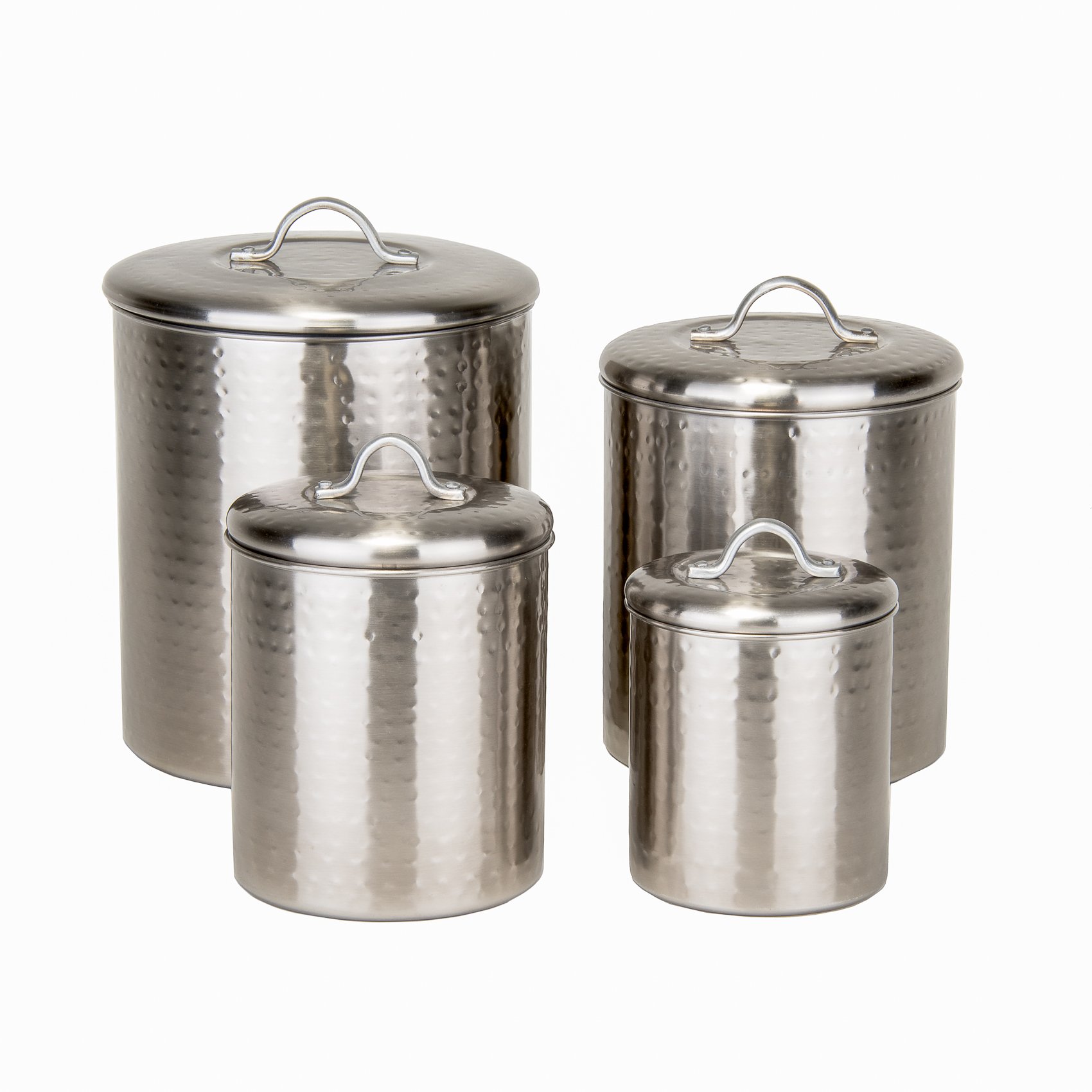 4 Piece Brushed Nickel Hammered Canister Set 4qt 2qt 1 5qt 1qt Walmart Com Walmart Com