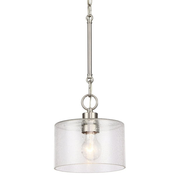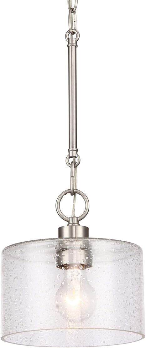 1 Light Brushed Nickel Pendant With Clear Seedy Glass Pendant