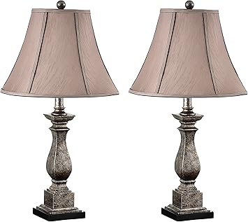 Kings Brand 25 H Brushed Silver Brown Fabric Shade Table Lamps