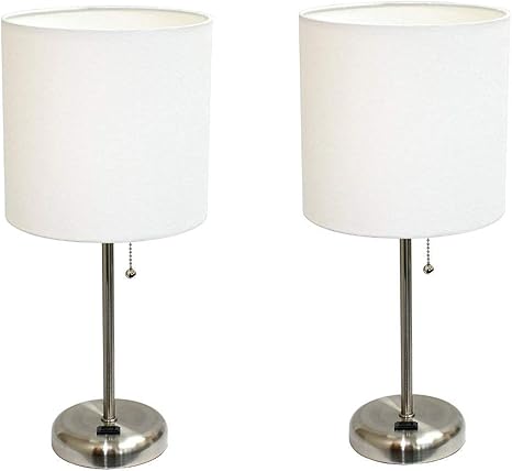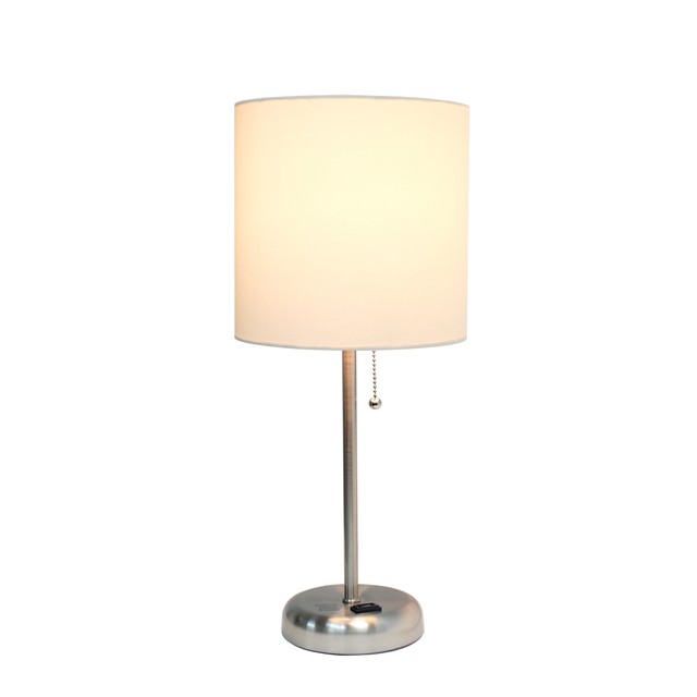 Limelights Lt2024 Wht Brushed Steel Lamp With Charging Outlet And