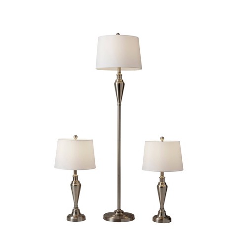 Brushed Steel 3 Piece Floor And Two Table Lamps Set The Brick