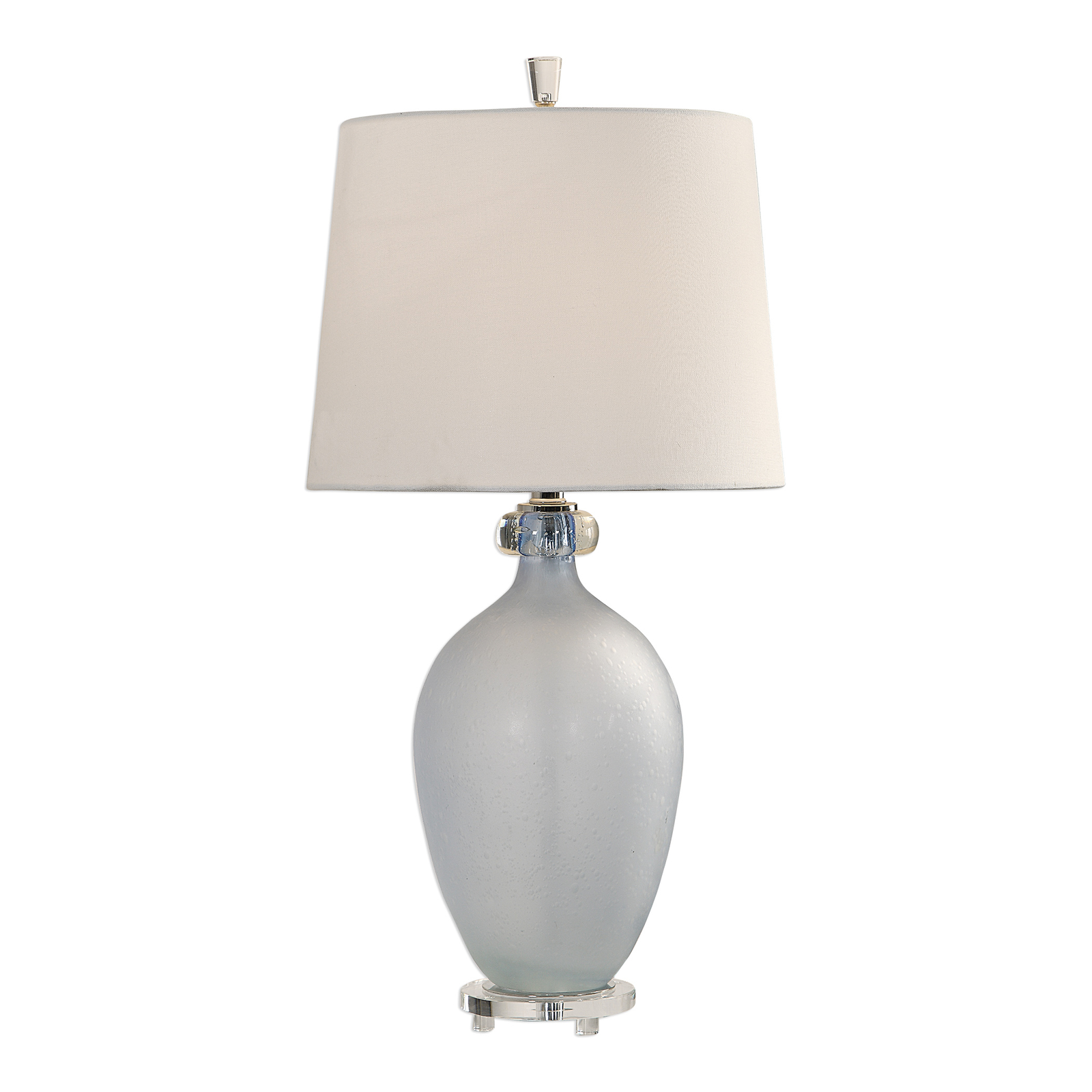 Soft Blue Bubble Glass Table Lamp White Shade Crystal Bottle